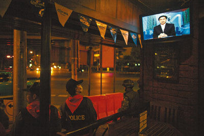 反政府紅衫軍指控阿披實,在軍方協(xié)助下非法奪權(quán),3月中發(fā)起示威,要求解散國會和提前大選,其后占據(jù)首都曼谷商業(yè)區(qū)至今,造成巨大經(jīng)濟損失,并與軍警多次發(fā)生暴力沖突,其中在4月10日“黑色星期六”的流血沖突,造成27人死亡,近1000人受傷。