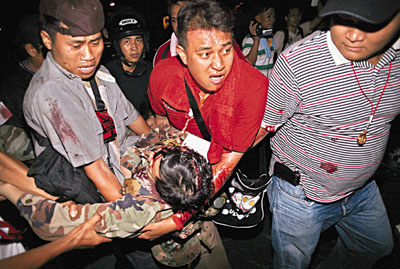 中新網(wǎng)5月14日電 據(jù)香港《文匯報(bào)》14日?qǐng)?bào)道,泰國(guó)局勢(shì)再趨緊張,反政府紅衫軍拒絕結(jié)束示威,總理阿披實(shí)收回11月大選的和解提議。軍方昨(13日)晚出動(dòng)裝甲車狙擊手封鎖紅衫軍示威地點(diǎn),并截水截電,圖逼走示威者。紅衫軍營(yíng)地之后傳出連串槍聲和至少4下爆炸聲,據(jù)報(bào)造成至少1死20傷,其中支持紅衫軍的陸軍少將卡迪亞頭部中槍昏迷。當(dāng)局宣布擴(kuò)大在中部和東北部17個(gè)府實(shí)施緊急事態(tài)法。