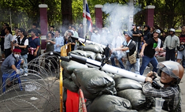 中新網(wǎng)5月14日電 據(jù)外電報(bào)道,泰國(guó)軍隊(duì)14日中午向聚集在曼谷隆比尼集市的“紅衫軍”示威者發(fā)射催淚瓦斯。