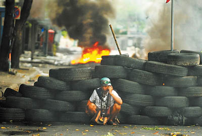 13日,為了逼迫占據(jù)曼谷繁華商業(yè)區(qū)已近兩個月的“紅衫軍”撤離,泰國政府切斷了該商業(yè)區(qū)的水電供應(yīng),“紅衫軍”隨即與軍警發(fā)生沖突。16日,“紅衫軍”點燃了作為路障的汽車輪胎,一股股濃煙騰空而起。此外,他們還把警察設(shè)立的交通檢查站潑上汽油并放火焚燒。