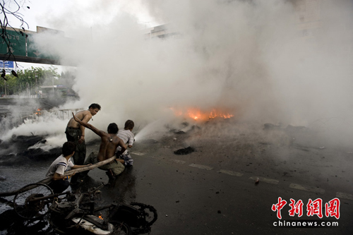 5月13日晚間,泰軍隊(duì)封鎖了“紅衫軍”在曼谷中心商業(yè)區(qū)拉差巴頌路口的集會(huì)區(qū)域,流血沖突爆發(fā),傷亡人數(shù)不斷上升,到目前為止,已知有35人在這3天的沖突當(dāng)中死亡。