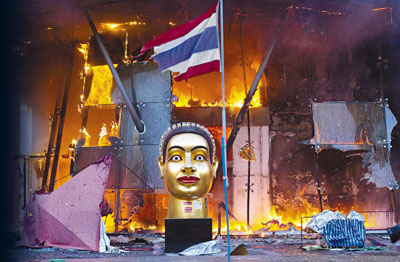 中新網(wǎng)5月20日電 據(jù)香港《文匯報》報道,泰國軍方19日清場,希望將陷入內戰(zhàn)邊緣的曼谷拯救出來,雖然紅衫軍節(jié)節(jié)敗退,但有激進分子未肯罷休,四處放火,電視臺、股票交易所、電力公司、幾間銀行、商場戲院都遭殃,商場和便利店亦成為搶掠目標。據(jù)報曼谷有27處地方起火,泰國最大的商場Central World、Siam Square和Siam Paragon三大購物中心被縱火,其中Central World燒通頂,據(jù)報快將倒塌。