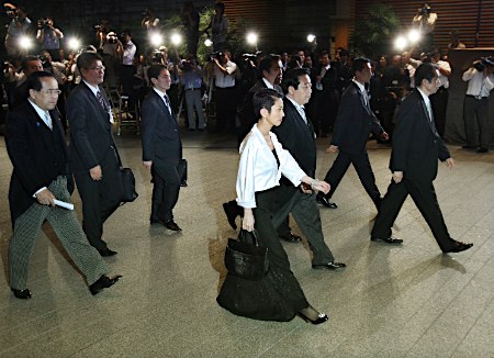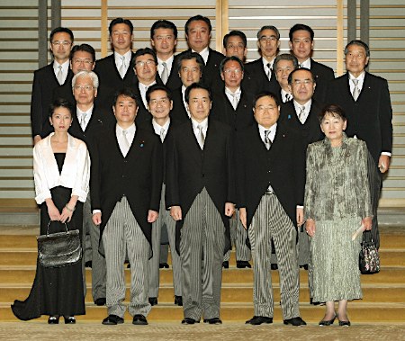 8日晚,日本天皇在天皇宮中舉行儀式,任命菅直人擔任日本新首相,同時一一任命了其它17名大臣。天皇對每一位大臣說:“肩負重責,辛苦你了”。