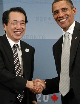 在普天間問題上,由于前首相鳩山由紀夫謀求縣外搬遷招致美方不信任,日美關(guān)系一度陷入惡化。為此,菅直人此番采取對美協(xié)調(diào)路線,欲構(gòu)筑其個人同奧巴馬之間的信賴關(guān)系。
