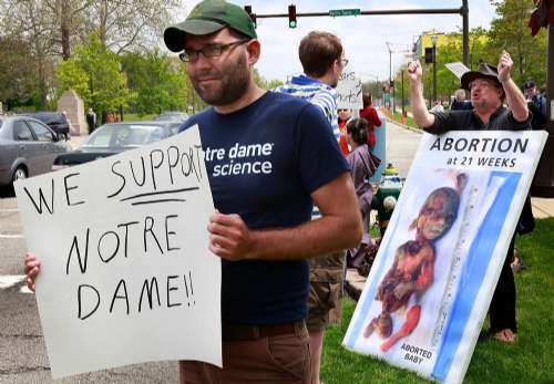 據(jù)報(bào)道,奧巴馬支持墮胎和胚胎干細(xì)胞研究立場(chǎng),觸發(fā)天主教保守派人士和師生不滿。一些活動(dòng)人士早已誓言干擾奧巴馬在該地的演講。