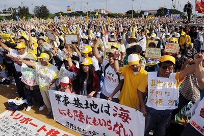 據(jù)報道,將機場遷至鹿兒島縣德之島的方案遭到了當?shù)氐膹娏揖芙^。日本首相鳩山由紀夫能否按照承諾在5月底前解決搬遷問題令人擔憂。政府內部有人主張回歸遷往名護市施瓦布軍營沿岸地區(qū)這一現(xiàn)行方案。集會顯示了沖繩拒絕縣內搬遷的民意,這將使得政府更加難以應對。