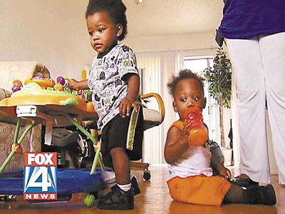 中新網(wǎng)5月19日電 美國得克薩斯州達(dá)拉斯一名20歲女子,于11個(gè)月前誕下一對雙胞胎,兩名男嬰出生時(shí)間僅相差7分鐘。離奇的是,這對雙胞胎竟然“同母異父”。原來,該名女子懷孕時(shí)背夫偷漢,兩粒不同卵子在短時(shí)間內(nèi)分別受精,出現(xiàn)不同生父的雙胞胎情況罕見,機(jī)率僅百萬分之一。