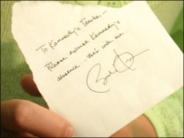 柯普斯說:“她叫肯尼迪。隨后,肯尼迪穿過人群去領奧巴馬幫她寫的假條,奧巴馬則專心聽她父親提的健保問題。