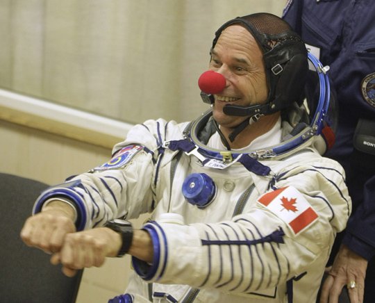 拉里柏提被封為進入太空的第一位小丑,他一共帶了九個紅鼻頭,太空站人人有份。他在出發(fā)前說:“我將帶著我的幽默升空。即使在這樣嚴(yán)肅的場合,仍然需要留點幽默的空間!辈贿^,他也得肩負嚴(yán)肅的任務(wù)。拉里柏提打算從國際太空站主持一場兩小時的實況轉(zhuǎn)播表演,倡導(dǎo)潔凈用水以及保護地球水資源的重要性。