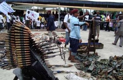 據(jù)新加坡《聯(lián)合早報》報道,尼日利亞武裝組織“尼日爾三角洲解放運動”的兩名首領(lǐng)湯姆和達(dá)戈戈前天歸順,兩人帶領(lǐng)數(shù)百名部下走出紅樹林,到石油中心哈科特港繳械。他們交出大批火箭發(fā)射器、手榴彈、機關(guān)槍、自動步槍和多桶彈藥。