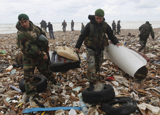 目前,有關(guān)方面已經(jīng)鎖定了飛機墜海的地點,為黎巴嫩沿海小鎮(zhèn)納阿梅以西約3.5公里海域。飛機墜毀后幾個小時,一些殘骸和機上物品被沖上了附近的海岸,包括座椅、嬰兒鞋、滅火器、手提箱和藥瓶等。