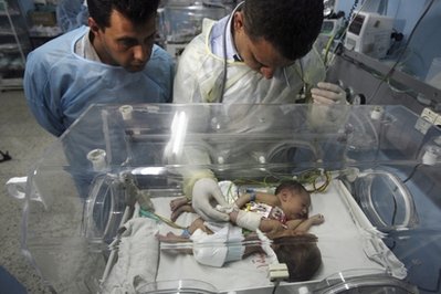 沙特衛(wèi)生部人員稱這對連體嬰已經(jīng)被送至沙特的國民警衛(wèi)醫(yī)院。醫(yī)生表示,這對女嬰于3月27日出生在加沙南部城鎮(zhèn)汗尤尼斯,她們的胸部相連,共用一段小腸,但是她們都有各自的心臟、肺和其他器官,這增加了手術(shù)成功幾率。