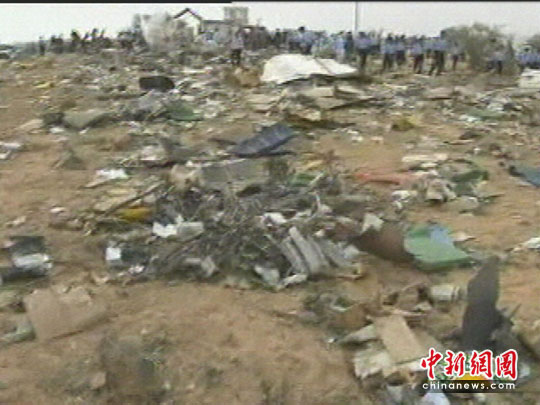 利比亞電視臺(tái)播放的新聞畫面顯示,客機(jī)失事后,現(xiàn)場遍地殘骸一片狼藉。
