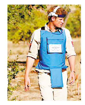 在訪問期間,哈里王子接受了基本的拆雷訓練,并且在專業(yè)人員的指導下成功拆除了7個埋設在身邊的地雷。