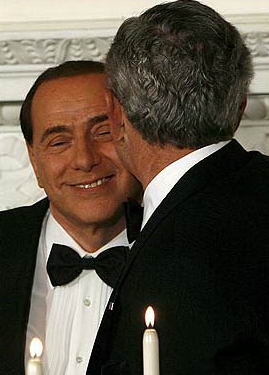 布什和貝盧斯科尼在舉杯后互碰面頰,布什總統(tǒng)還愉快地致了告別辭。一位官員稱:“政治家們表現(xiàn)得如此親密是不多見的,他們看起來更像是好友而不是世界領(lǐng)導(dǎo)人!