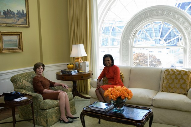 據(jù)美聯(lián)社2008年11月11報(bào)道,當(dāng)?shù)貢r(shí)間11月10日,美國(guó)當(dāng)選總統(tǒng)奧巴馬在白宮之行中已經(jīng)顯示出主人風(fēng)范,好像是在邀請(qǐng)布什參觀“自己”的辦公室。未來(lái)的第一夫人米歇爾顯然更關(guān)心自己孩子的教育問(wèn)題,在白宮短暫停留后,米歇爾立刻動(dòng)身前往華盛頓的幾所名校參觀,為孩子們擇校。