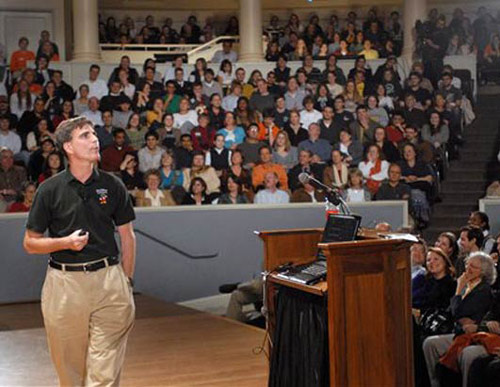 保施被評(píng)為2008年最具鼓舞人心的人。2007年8月,他得知自己患上胰腺癌,生命只剩下幾個(gè)月。去世之前,通過(guò)他的著名演講《最后一課》的視頻和書,鼓舞了成千上萬(wàn)的人們。這篇演說(shuō)反響極大,全球數(shù)百萬(wàn)人觀看了網(wǎng)上視頻,美國(guó)廣播公司將他選為“2007年年度人物”之一,《時(shí)代》雜志將他列入了“世界上影響最大的100人”,同名書籍至今仍然排在“建議類暢銷書”的榜首。這張照片是保施2007年11月27日,在弗吉尼亞大學(xué)禮堂中做最后一次演講時(shí)的情景。