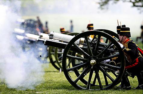 為慶祝英國(guó)女王伊麗莎白二世83歲的生日,英國(guó)皇家騎兵炮兵連在倫敦海德公園鳴放41響禮炮,來(lái)為女王慶生。這一天女王和丈夫菲利普親王待在溫莎城堡,沒(méi)有公開的行程。