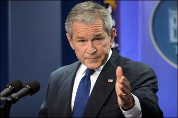 布什在白宮召開記者會說:“我們在伊朗有位領導人曾宣布,他想要摧毀以色列。”布什說:“所以我告訴大家,如果你們很想要防止第三次世界大戰(zhàn),你們似乎應該全心阻止他們?nèi)〉弥圃旌宋浔仨毜闹R!