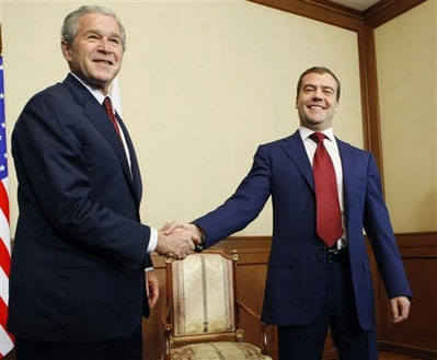 據(jù)香港《文匯報(bào)》報(bào)道,布什贊揚(yáng)普京誠(chéng)實(shí)坦白,會(huì)說(shuō)出心中所想。普京下月就會(huì)卸任總統(tǒng),由梅德韋杰夫接任。布什與梅氏首次會(huì)面后,贊賞對(duì)方為人直接,指出梅氏給他的印象非常正面,是個(gè)聰明人,很期待與他合作。梅氏表示會(huì)跟隨普京的足跡,尋求與美國(guó)發(fā)展更深厚的關(guān)系。峰會(huì)結(jié)束,布什昨午已啟程返美。