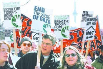 加拿大今天也出現(xiàn)示威活動。當(dāng)?shù)仉娨暸_報道,多倫多大約有1000人抗議議會上周作出的延長在阿富汗駐軍的決定。