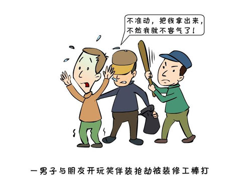 新聞浮世繪:一男子與朋友開玩笑佯裝搶劫被打