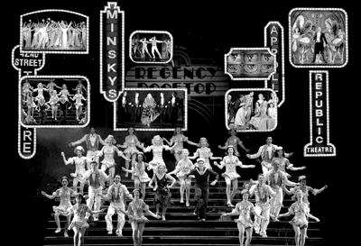 對(duì)于“百老匯”,中國(guó)觀眾已經(jīng)慕名已久,但是真正能夠看到正宗的百老匯音樂(lè)劇并不很多。以《42街》命名的音樂(lè)劇的創(chuàng)作淵源應(yīng)該是來(lái)自上個(gè)世紀(jì)30年代的同名好萊塢歌舞影片,表現(xiàn)42街上的年輕人在參加百老匯音樂(lè)劇演員選拔中發(fā)生的故事,一名默默無(wú)聞的女孩在音樂(lè)劇演員選拔和演出中展露才華,因?yàn)榕既坏臋C(jī)會(huì)而一夜成名的故事,是一部真正的揭示百老匯幕后故事的音樂(lè)劇。