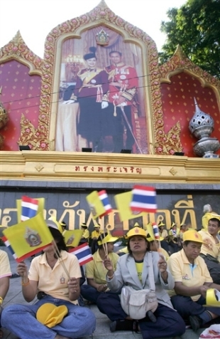 中新網(wǎng)12月5日電 綜合報(bào)道,12月5日是泰國(guó)國(guó)王普密蓬的80歲壽辰,泰國(guó)各界舉行慶典隆重紀(jì)念。數(shù)萬(wàn)泰國(guó)民眾參加了當(dāng)天的慶;顒(dòng),普密蓬和王后接受民眾的歡呼致意。