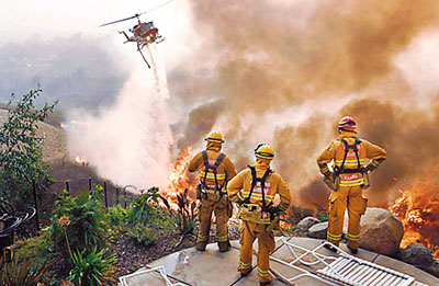 美國《時代》周刊近日選出本年度十大照片。首圖為加州山火令消防員亦束手無策。