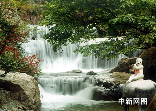鴛鴦瀑:興地村王如貴家貧無(wú)子,有女名引弟至孝。是年如貴患病而亡,妻傷悲過(guò)度,臥病在床。女引弟上綿山采藥時(shí),忽遇一惡狼追趕,被一男子奮身相救。引弟謝道:“承蒙公子相救,敢問(wèn)家住何方,姓什名誰(shuí)?男子答道:吾之家境,姑娘日后便知,現(xiàn)在采藥要緊!毖援叡銕凸媚锊伤。日子一久,兩人便產(chǎn)生了愛(ài)慕之情。是月望日,那男子又幫引弟在此采藥,二人纏綿難舍,不覺(jué)月上樹(shù)梢。忽有一老人從溝內(nèi)走出說(shuō):“你二人前世姻緣未滿(mǎn),現(xiàn)世當(dāng)為鴛鴦相伴。何不就此月明之下,讓老夫做媒,永結連里!倍寺勓,知是月下老人,連忙拜謝,老人隱沒(méi)無(wú)蹤。從此二人便結為夫妻。不知過(guò)了多久,這里便出現(xiàn)了一雙鴛鴦。后凡有青年男女上去一坐,便可喜結(jié)良緣,終生相伴。