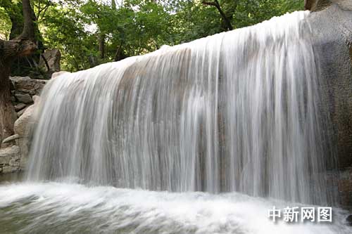 天源瀑布:介公背負(fù)介母至此,已是汗流頰背,精疲力竭。舉目仰望,天步艱難。數(shù)月風(fēng)塵,子推衣灰體垢,介母看著不覺(jué)心痛。此時(shí),忽聽(tīng)山壁上似有泉水之聲,定睛望去,一股飛流傾泄而下,云霧之中又見(jiàn)文殊天尊于泉水涌出處拂塵一揮,隱入幽谷之中。子推母子望谷而拜,于瀑下洗滌,塵慮頓消。