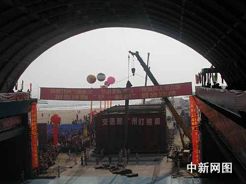 十二月二十八日,“南海一號(hào)”將進(jìn)入“水晶宮”,中午十二時(shí),它依然倚門翹首在“水晶宮”前,預(yù)計(jì)下午可以入住。 索有為 攝