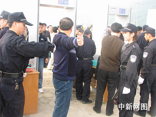 進入慶典現(xiàn)場人員進行安檢。