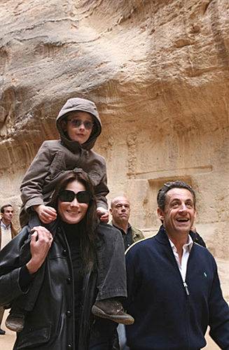 1月5日,法國總統(tǒng)尼古拉·薩科齊與布呂尼母子在約旦佩特拉古跡參觀。 據(jù)法國媒體1月6日報道,法國總統(tǒng)薩科齊2月將與新女友卡拉·布呂尼結(jié)婚。