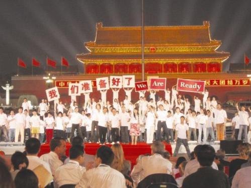 9)奧運(yùn)會(huì)倒計(jì)時(shí)一周年天安門廣場(chǎng)大型演出活動(dòng),《明橋體育》總編和時(shí)代華語廣播電臺(tái)臺(tái)長作為休斯頓及美南地區(qū)華文媒體代表應(yīng)邀出席現(xiàn)場(chǎng)觀禮----2007年8月8日是北京奧運(yùn)會(huì)倒計(jì)時(shí)一周年,北京奧組委當(dāng)晚在天安門廣場(chǎng)舉行大型文藝演出和慶;顒(dòng)。休斯頓及美南地區(qū)兩家華文媒體的負(fù)責(zé)人,《明橋體育》總編輯勞荊和時(shí)代華語廣播電臺(tái)臺(tái)長美齊應(yīng)北京市僑辦邀請(qǐng),作為貴賓出席了現(xiàn)場(chǎng)的觀禮活動(dòng)以及多項(xiàng)紀(jì)念和慶;顒(dòng)。