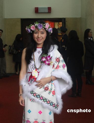 為吸引記者,一些“立委”的著裝花樣翻新。圖為一位“立委”頭戴花環(huán)前來(lái)報(bào)到。