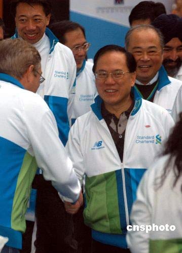特區(qū)行政長官曾蔭權(quán)到尖沙咀彌敦道起步點,主持馬拉松開跑儀式。