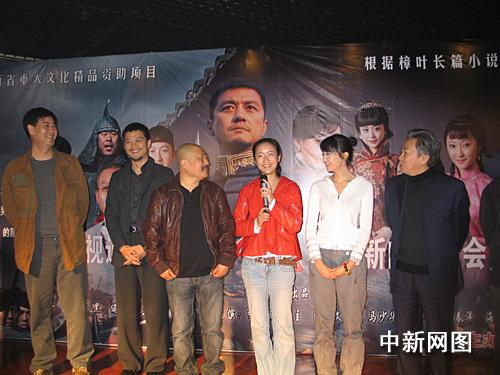三月十四日,由西部電影集團(tuán)投資的電視連續(xù)劇《關(guān)中風(fēng)云》在西安舉行新聞發(fā)布會(huì)。圖為劇中的男一號(hào)李亞鵬以及導(dǎo)演丁黑等來到現(xiàn)場,氣氛熱烈。作 者:冽瑋