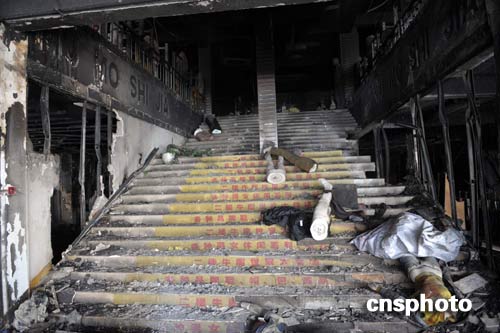 3月19日,拉薩朵林格路上一家被焚毀的服裝店內(nèi)呈現(xiàn)一片狼籍。
