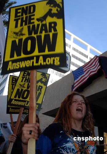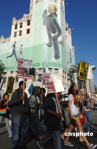 組圖:好萊塢“星光大道”上演反戰(zhàn)游行(4)