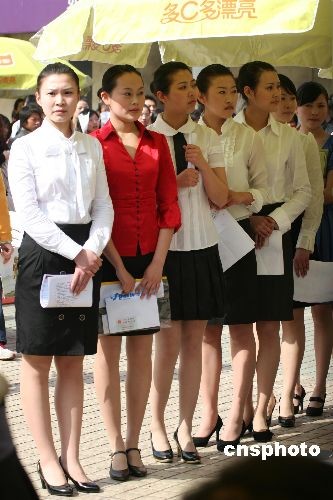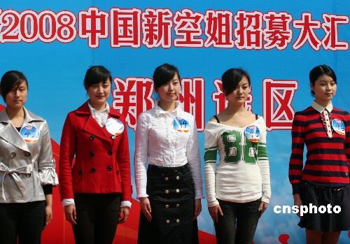 3月22日,2008中國新空姐招募大會在鄭州二七廣場舉行揭幕儀式。當(dāng)日,來自全國各地的兩千多位美女云集鄭州報(bào)名應(yīng)聘。據(jù)介紹,這是有史以來最大規(guī)模的空姐招募,此次招募大會計(jì)劃在全國招募500名空姐,其中鄭州地區(qū)招募55名空姐。中新社發(fā) 陳代述 攝