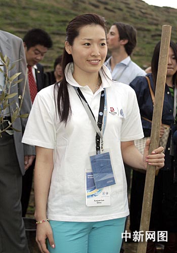北京奧運(yùn)會(huì)火炬希臘傳遞的第一位中國火炬手、雅典奧運(yùn)會(huì)游泳冠軍羅雪娟,3月23日在希臘古奧林匹亞遺址顧拜旦紀(jì)念碑后的世界和平林種下橄欖樹苗,以幫助恢復(fù)古奧林匹亞遺址周圍2007年夏天遭受大火嚴(yán)重破壞的自然環(huán)境。中新社記者 王歡