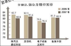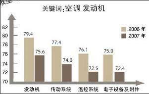 初始質量各環(huán)節(jié)滿意度均低于2006年,其中“發(fā)動機”和“剎車系統(tǒng)”滿意度降幅最大。