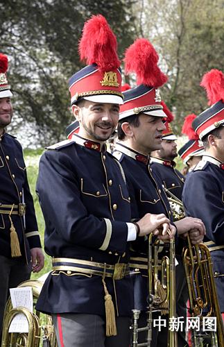 希臘當(dāng)?shù)貢r間3月24日,北京二00八年奧運會圣火采集儀式在古奧林匹亞競技場舉行。圖為身穿制服的樂隊樂手。 中新社記者 王歡