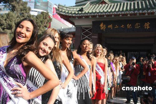 3月24日,“2008鄭州城市休閑游·國際旅游小姐走進(jìn)百年德化”啟動(dòng)儀式在鄭州二七廣場(chǎng)舉行。來自115個(gè)國家和地區(qū)的115名2008年國際旅游小姐出席了啟動(dòng)儀式。中新社發(fā) 陳代述 攝