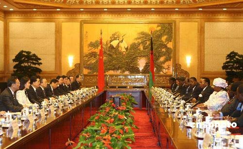 胡錦濤與馬拉維共和國(guó)總統(tǒng)會(huì)談。中新社發(fā) 盛佳鵬 攝