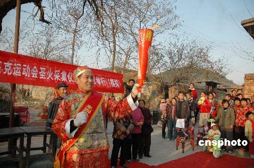 圖:山東農(nóng)民模擬奧運(yùn)圣火采集過(guò)程(2)
