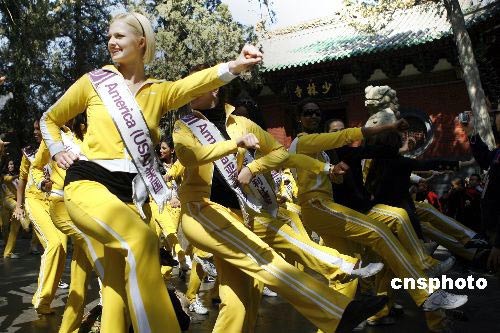 國際旅游小姐在少林寺模仿中國武術