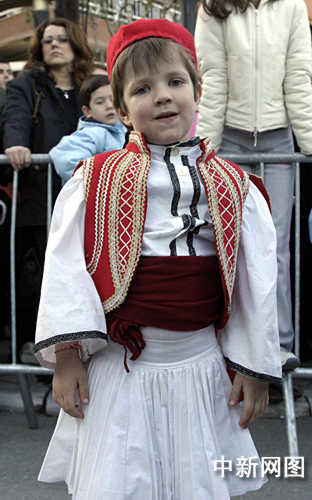 3月26日,北京奧運(yùn)會圣火希臘境內(nèi)傳遞第三日,抵達(dá)當(dāng)天最后一個城市韋里亞。當(dāng)?shù)厥忻袷⒀b參加慶典儀式。中新社記者 王歡