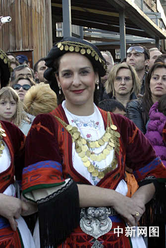 3月26日,北京奧運(yùn)會(huì)圣火希臘境內(nèi)傳遞第三日,抵達(dá)當(dāng)天最后一個(gè)城市韋里亞。當(dāng)?shù)厥忻袷⒀b參加慶典儀式。中新社記者 王歡
